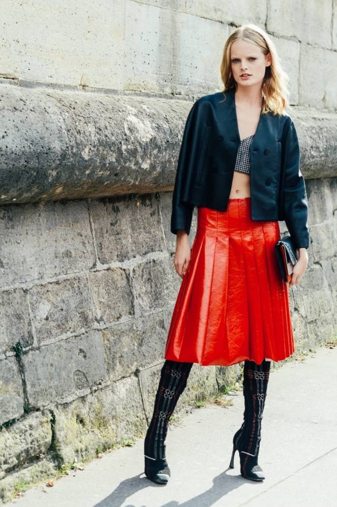Стрит стайл кожаная юбка.