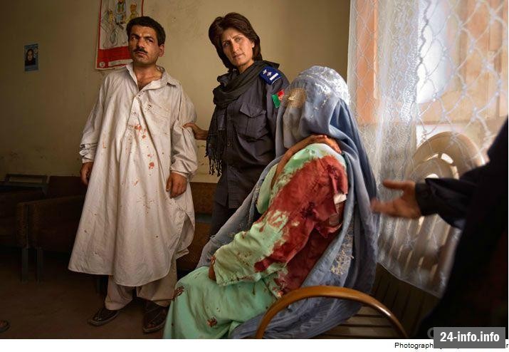 6. Кандагарский полицейский Малалай Какар арестовывает человека, который неоднократно бил ножом пятнадцатилетнюю жену, за неподчинение ему. “С ним ничего не сделают”, сказала Какар, когда ее спросили, что будет с этим человеком. “Мужчины здесь цари.” Какар была позже убита талибами.