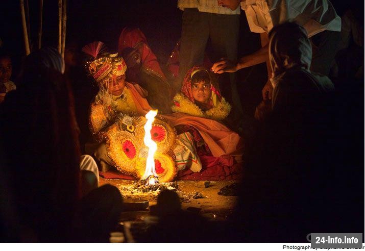 7. Уже далеко за полночь, когда пятилетнюю Раджани разбудили от сна и дядя понес ее на ее свадьбу. Детские браки является незаконными в Индии, так что подобные церемонии часто проводятся в предрассветные часы утра. Они становятся тайной, которую хранит вся деревня.