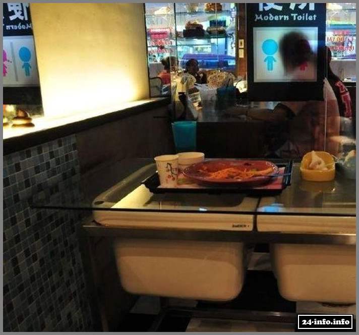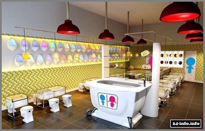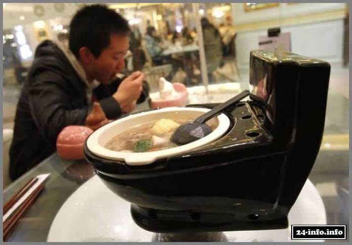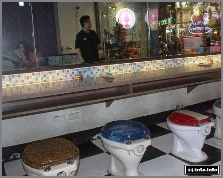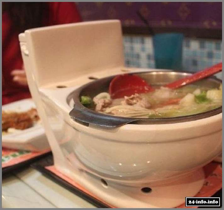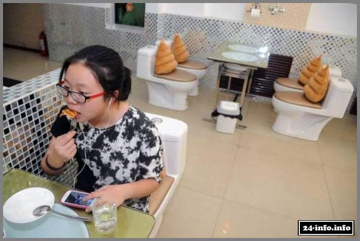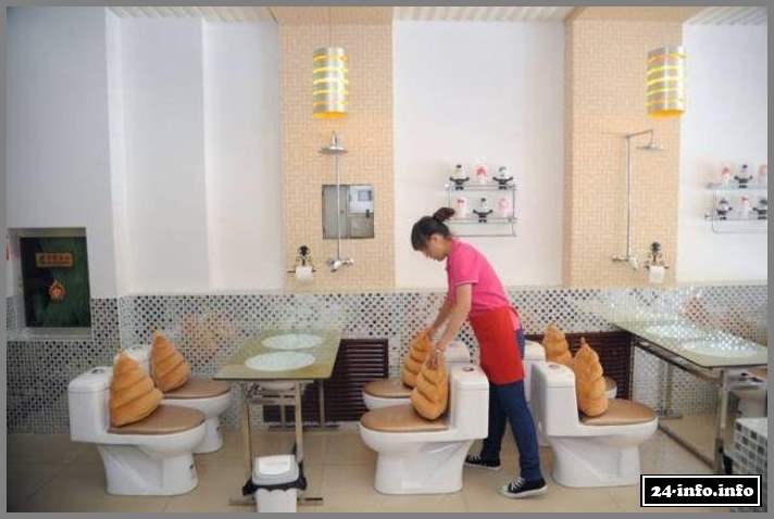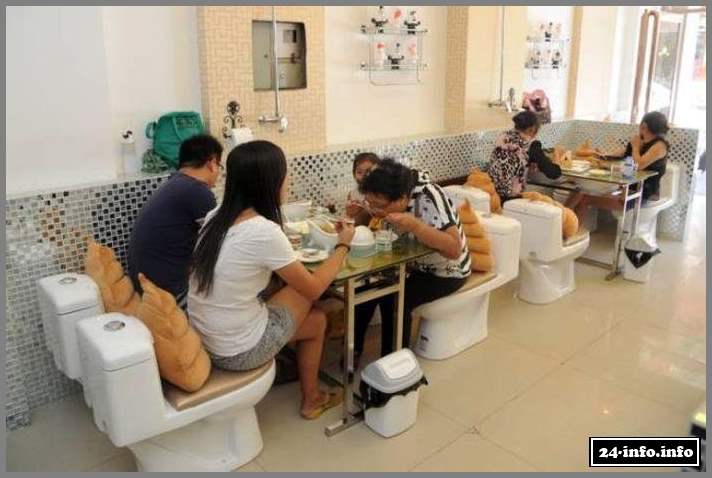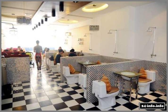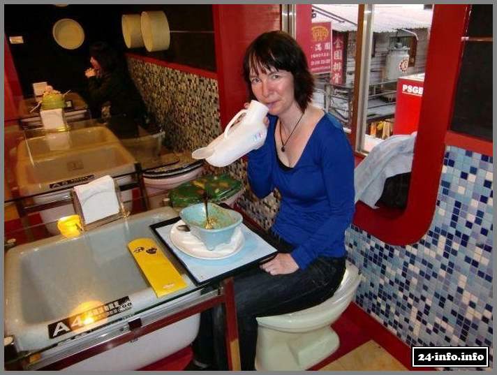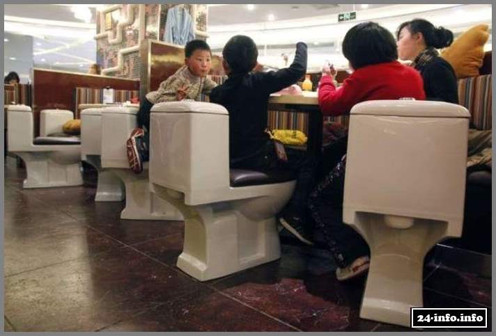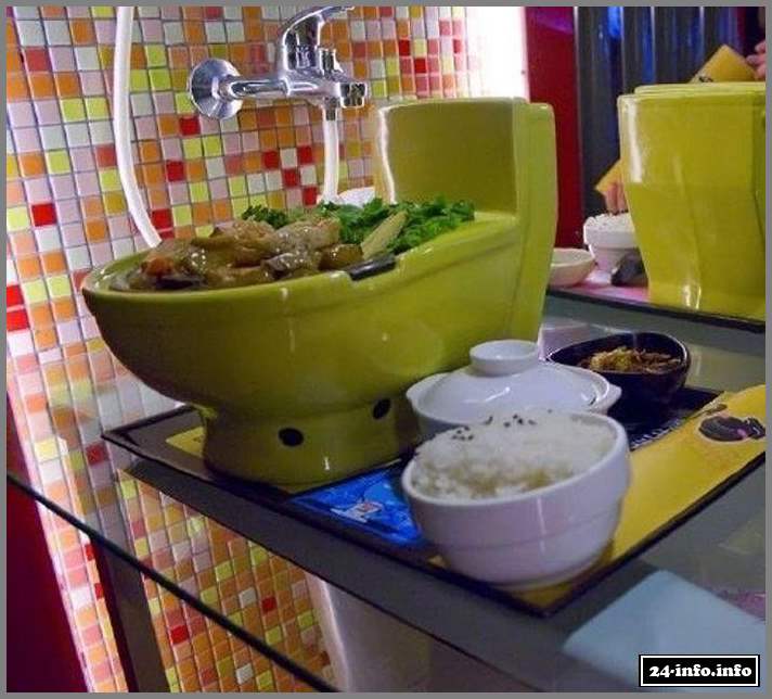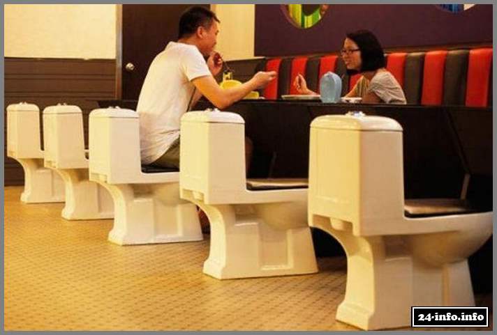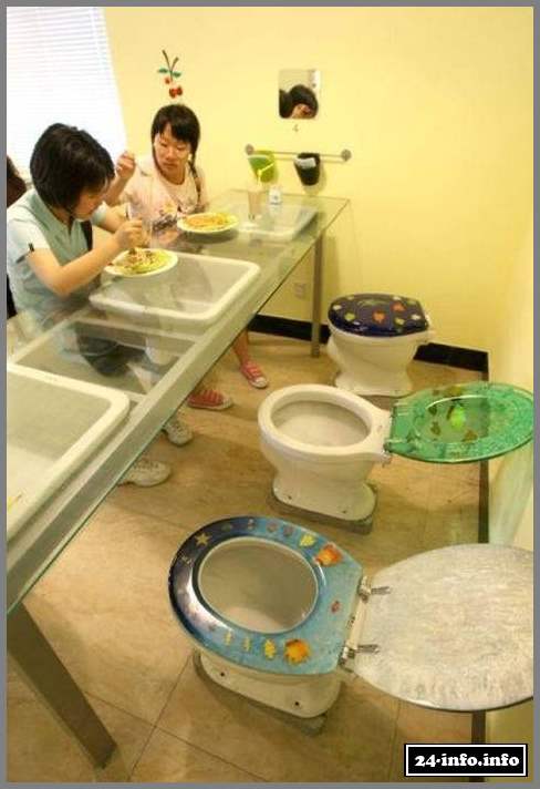 Пожалуй, один из самых необычных ресторанов в мире был недавно открыт в Китае. Основным направлением дизайна этого ресторанчика - стала тематика общественного туалета. Да уж, только в этом месте вам предложат вместо стульев - комфортабельные унитазы, а вместо тарелок - миниатюрные версии умывальников и биде. Смотрим далее.