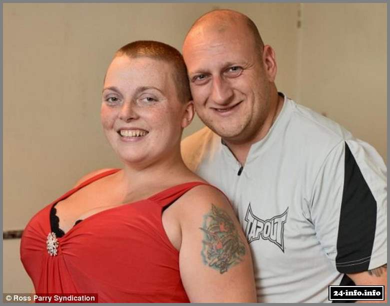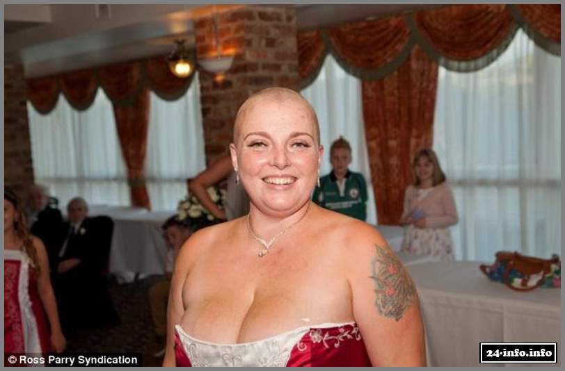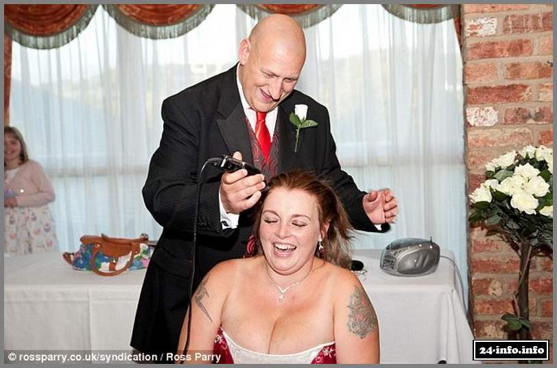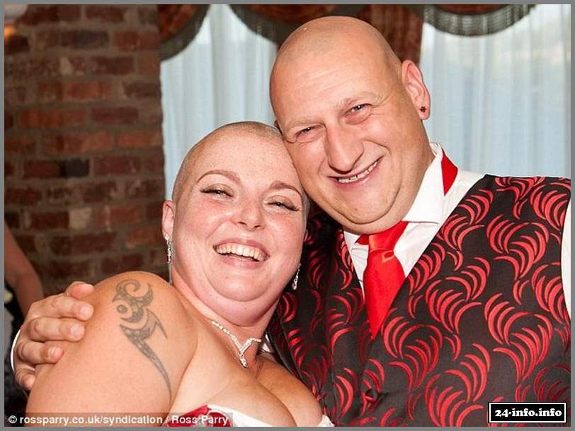 31-летняя Рокси Гривз и ее муж Мик познакомились в Интернете в 2010 году. Их отношения развивались медленно и уверенно, и уже в этом году Мик сделал долгожданное предложение Рокси, которая, кстати, уже имела двух детей. Во время знакомства пара обнаружила много общего, а самое главное, они оба потеряли своих близких из-за рака желудка. Это еще больше сблизило их. Именно тогда Рокси решила, что обязательно сделает что-то удивительное на своей свадьбе. Услышав впервые о задумке Рокси, Мик немного удивился, но согласился, лишь с одним условием - "обрить голову после официального бракосочетания".