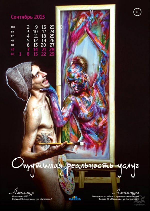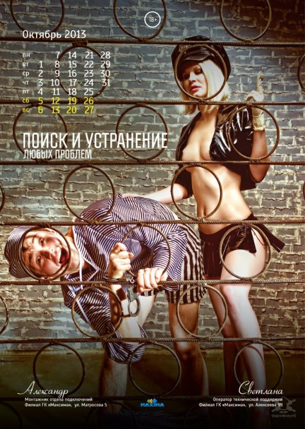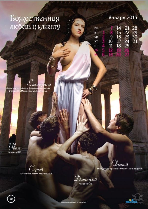 Сотрудники разделись для календаря провайдера 14 января, 2013 2 905 Сюжет календаря рассказывает о конкурентных преимуществах компании, которые достигаются конкретными сотрудниками интернет-провайдера. 0 Рубрика: Интересное