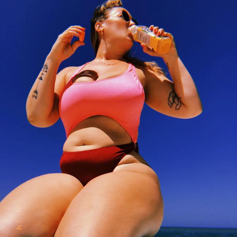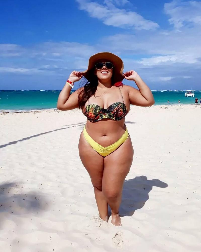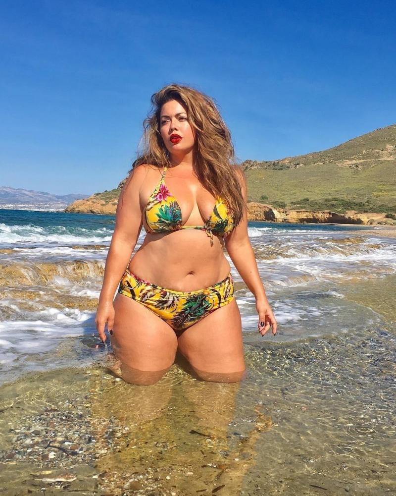 Бикинидегі үлкен өлшемді модель Эшли Грэм