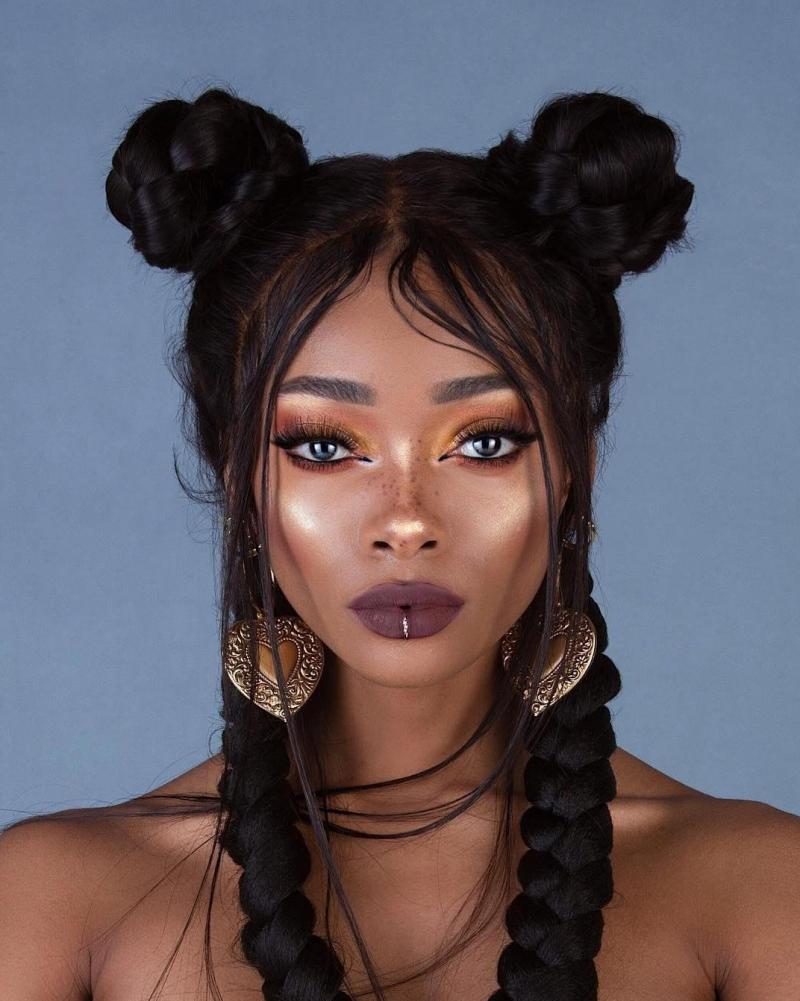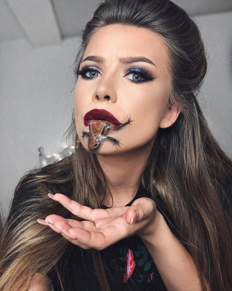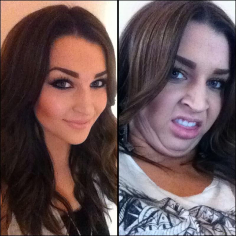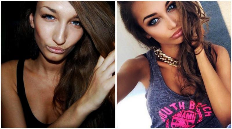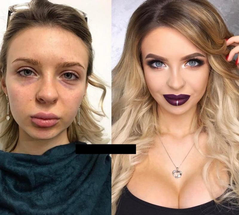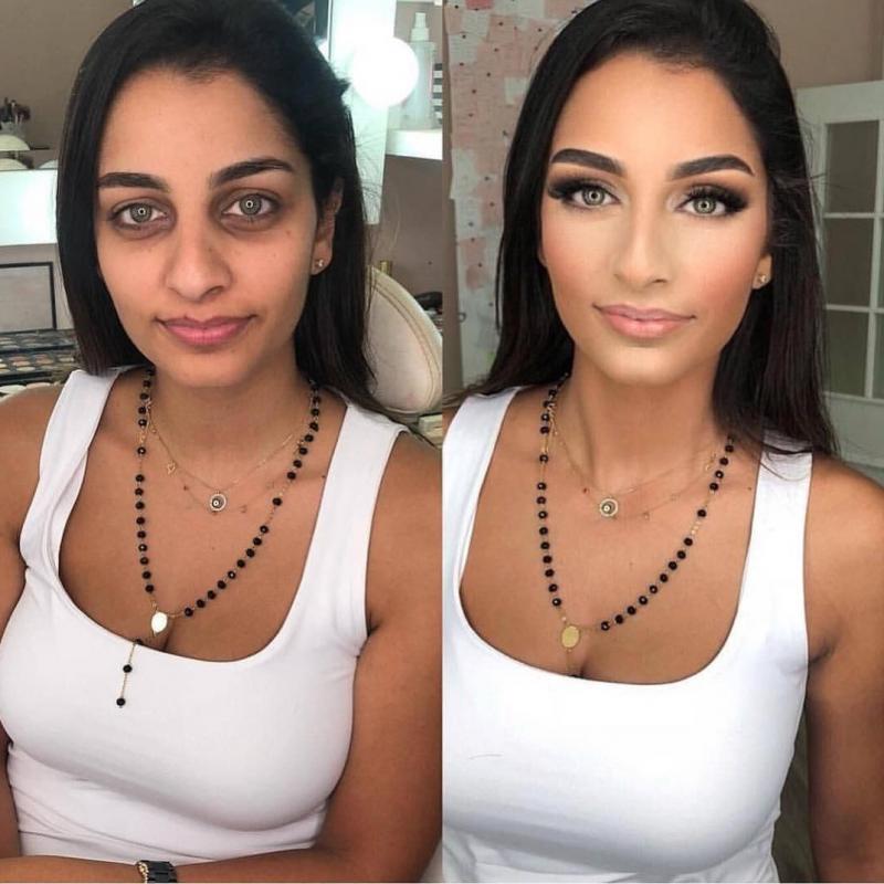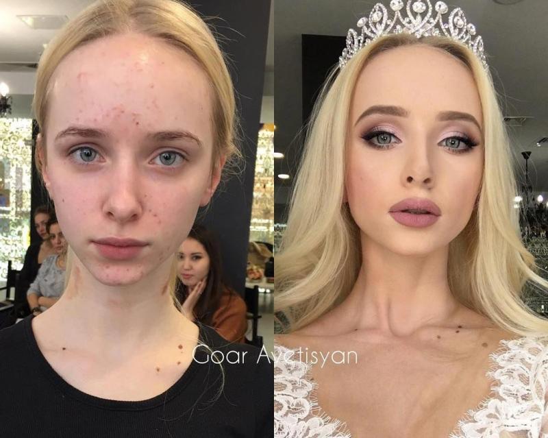 дейін және кейін әдемі макияж.