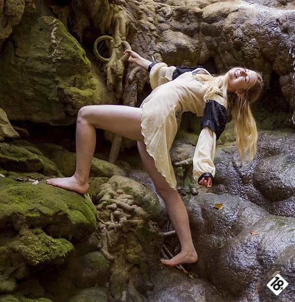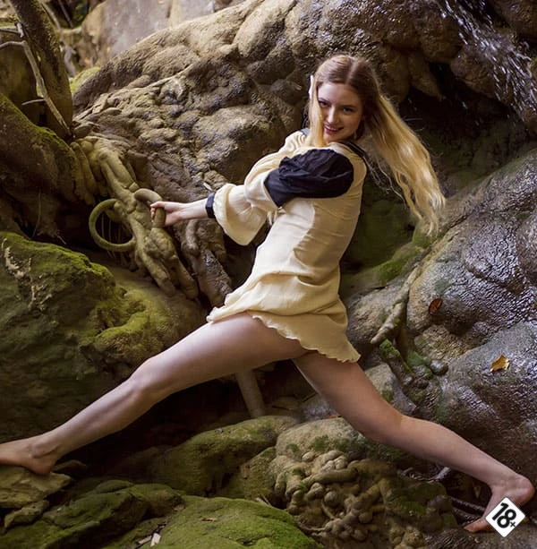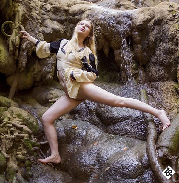 Привет! Хочешь увидеть волшебство? Заходи на страницу с фото ню молодой девушки в бохо-стиле с эльфийскими ушками. Она позирует в сказочном лесу у горного ручья с водопадом. Это просто завораживает!
