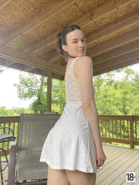 Де літо — там сарафани без білизни! На першій фотці цей квіточковий сарафан з чорними панчохами сидить якось криво й безглуздо, бо без трусиків усе так соковито просвічує й манить доторкнутися. Еге ж, бачиш ті форми, від яких хапає дух і тягне ближче?