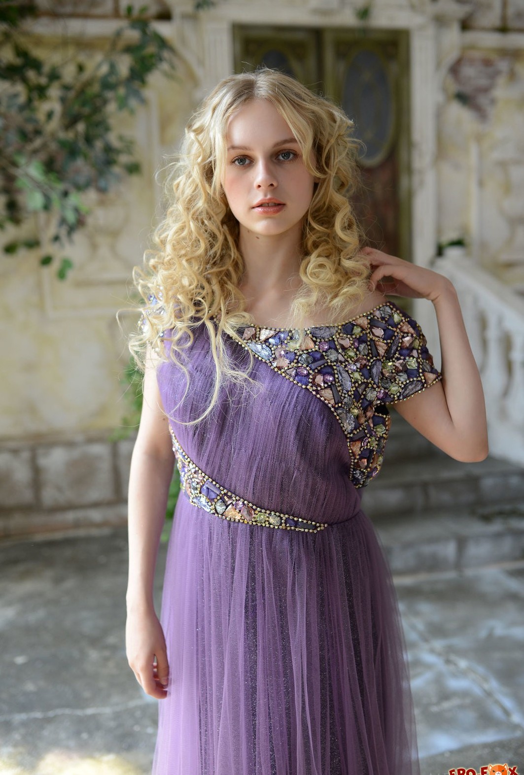 Неймовірно красива і зваблива молода дівчина знімає під стать їй, гарна сукня бузкового кольору і залишається абсолютно голою перед фото камерою. Мила блондинка має пружним тілом з маленькими грудьми, підтягнутою попкою і акуратною, виголеній пісей, а дивитися на все це одне задоволення ...