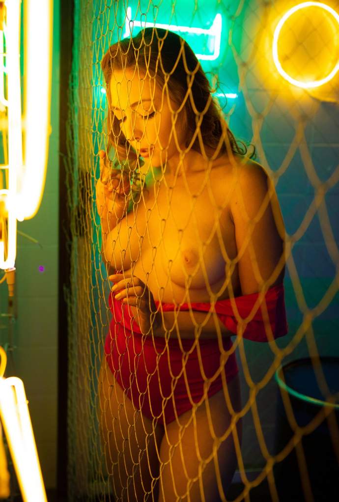 Пристрасно танцюючи під гучну музику, розпусна баба поступово роздяглася до гола в нічному клубі, оголивши свої видатні принади. Гола тьолка збудливо випинає свої красиві пружні сиськи і в різних відвертих позах демонструє всім своє сексуальне шикарне тіло.