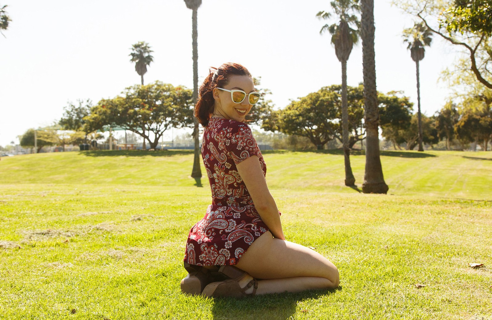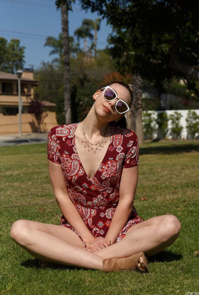 Безсоромна руда баба, захопивши з собою безвідмовного фотографа, роздяглася на вулиці і грайливо позує на камеру. Розпусна телиця в короткій сукні розташувалася в громадському парку і показує всім свої маленькі сиськи з гострими збудженими сосками і апетитну дупу в трусиках під спідницею.