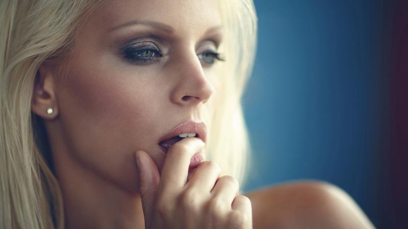 Девушка красотка блондинка думает