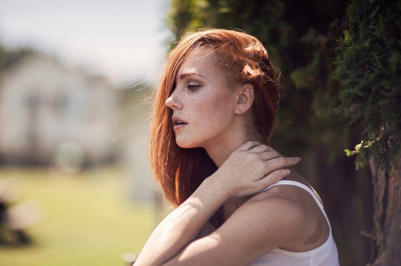 Рыжая девушка красотка в профиль
