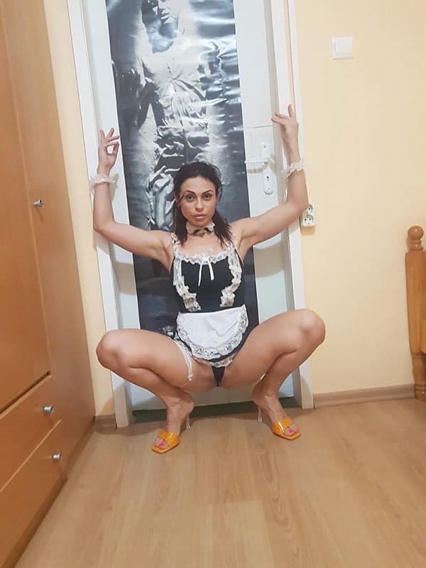 Бабенка в сексуальном наряде горничной. Она обожает меня шокировать, но от этого костюма мой пенис просто взрывается от желания завалить её в постель.