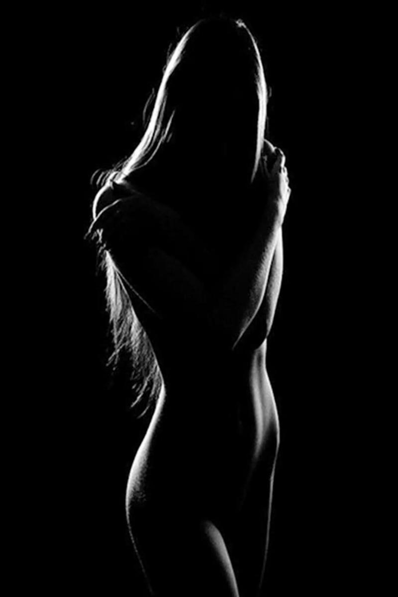 Обнаженный дамский силуэт в темноте