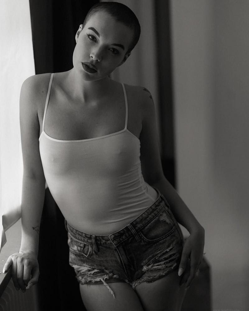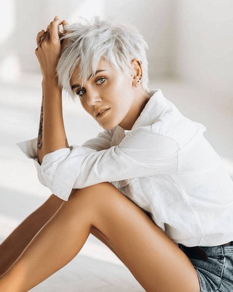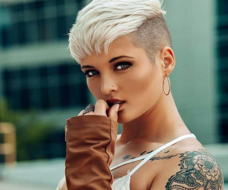 Блондинка с маленькими волосами и тату