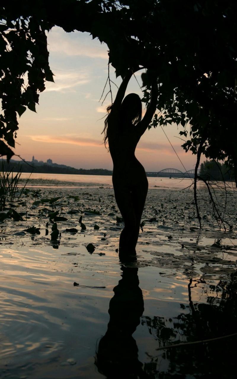 Стройная фигура силуэт на закате