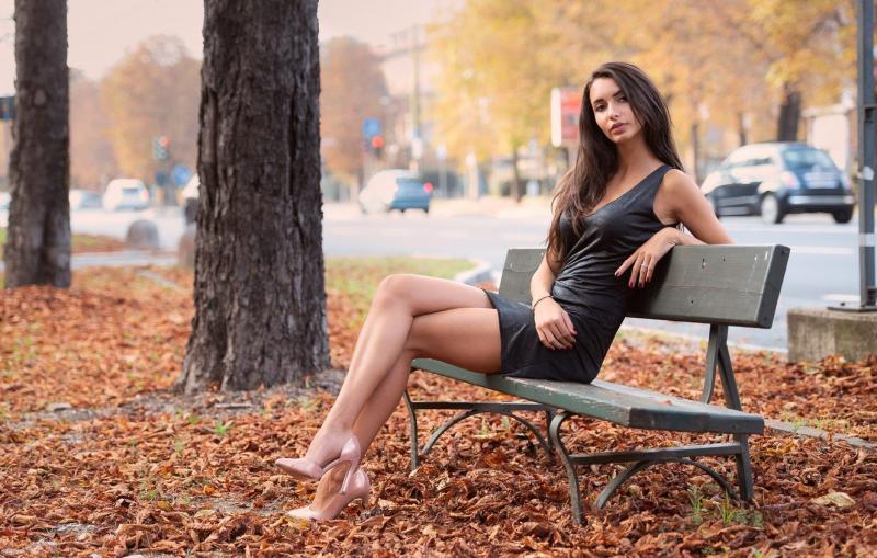 Девушка красотка на лавочке осенью