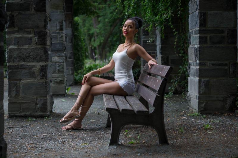 Девушка красотка на лавке фотосессия