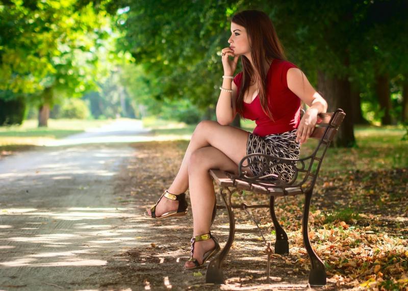 Очень сексуальная девушка красотка на лавке