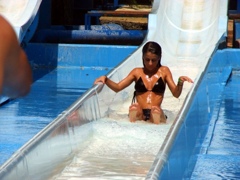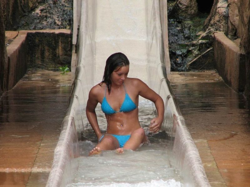 Аквапарк способен подарить массу радости не только детям, но и взрослым мужикам, в том случае, если порезвиться в водичке пришло много девушек. Смотреть на барышень, спускающихся с горки - сплошное удовольствие. Нет-нет да и соскочит у кого-то верхняя часть купальника. А порой и нижняя. Эх, скорее бы лето - махнуть на моря.