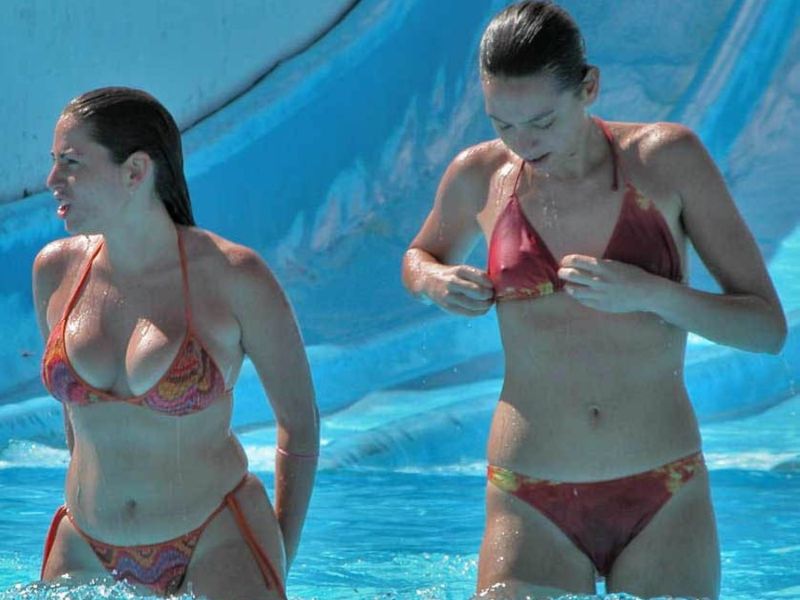 Как девушки развлекаются в аквапарках