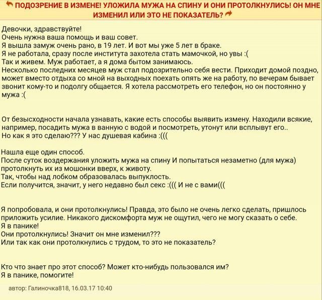 Давайте заглянем на популярные дамские форумы и группы в соц сетях, чтоб поглядеть на то, какими неуввязками и советами они там делятся вместе. Самое необычное, что большая часть пишут подобные вещи на полном серьезе, чем вызывают суровые опаски в собственной адекватности.