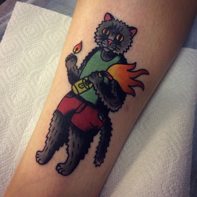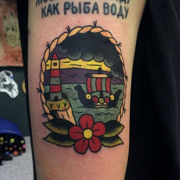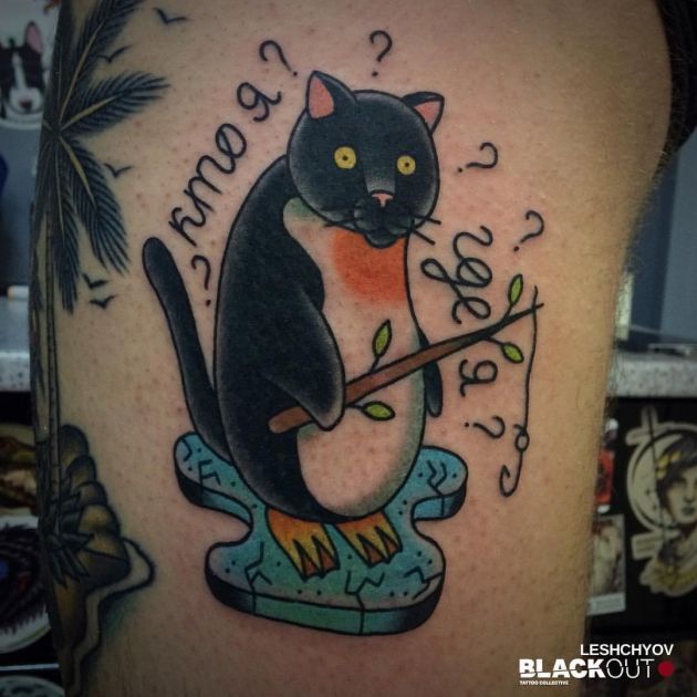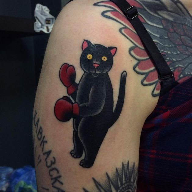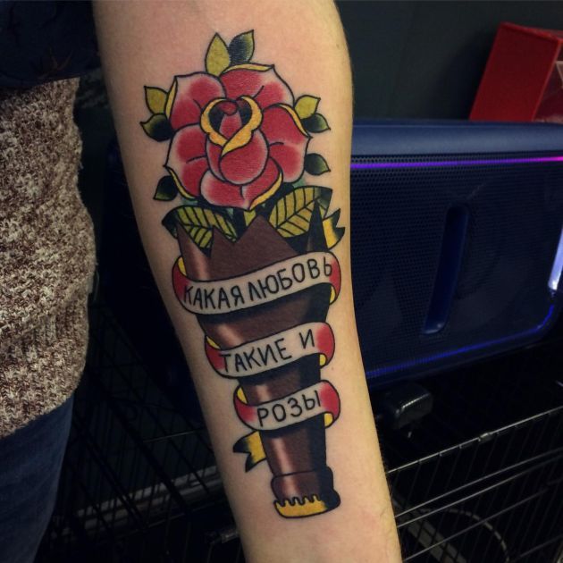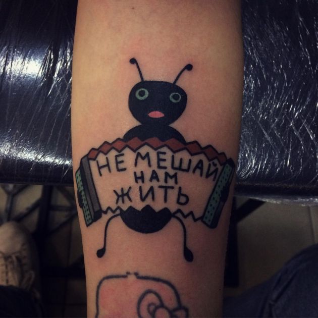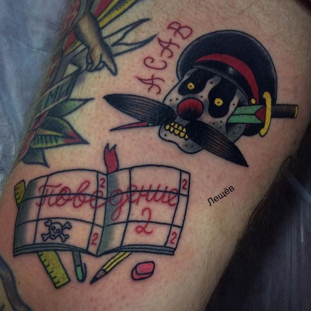 Тату-мастер Егор Лещев из Санкт-Петербурга выучился на горного инженера, но пару лет назад он увлекся татуировками. Когда его хобби переросло в нечто большее друзья подарили драгоценную тату-машину, и Егор кардинально сменил род деятельности. Сейчас у него возник свой собственный стиль и много клиентов, желающих получить лубочные олдскульные рисунки с русским колоритом.