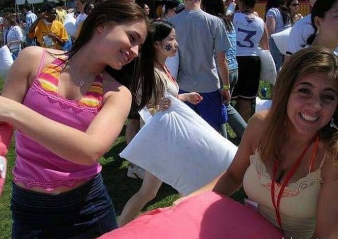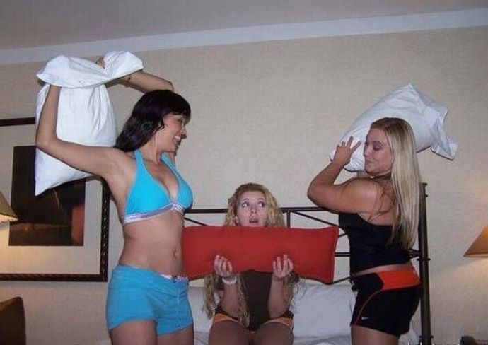 Девушки и борьба подушками 19 сентября, 2018 2 229 Девушки отрываются на вечеринках и дерутся подушками, перья летят во все стороны и бабёнкам это нравится. +1 Рубрика: Картинки / Эро-приколы