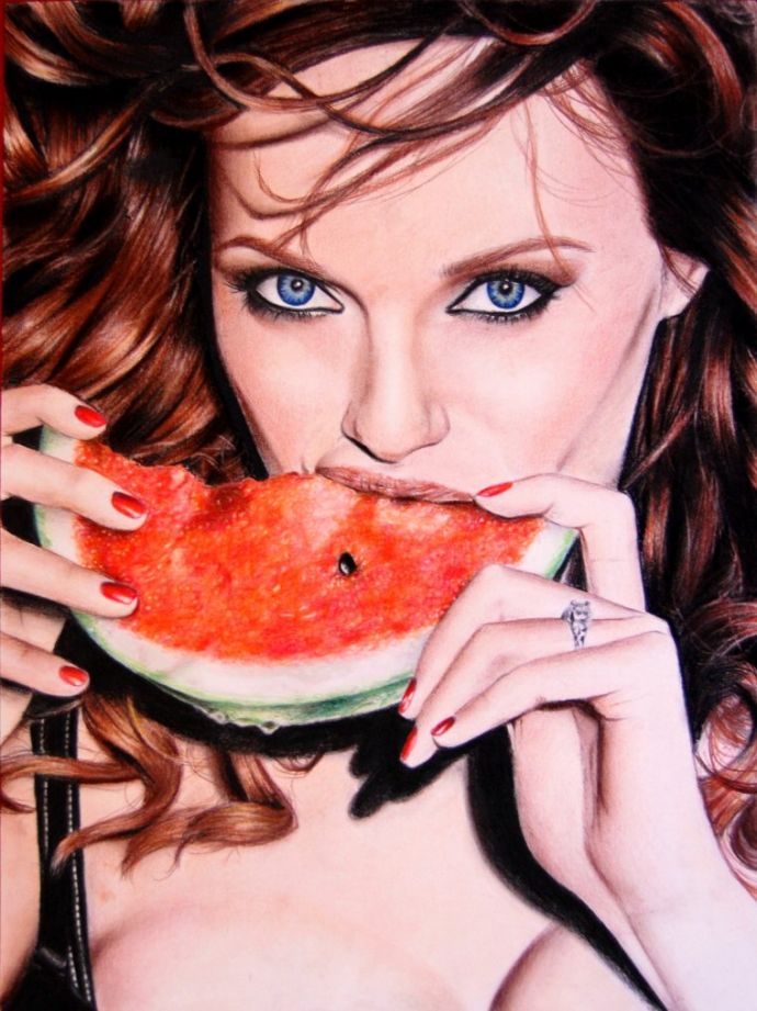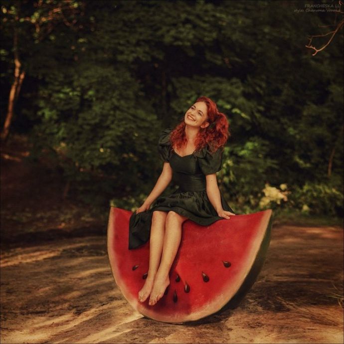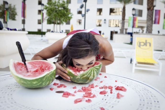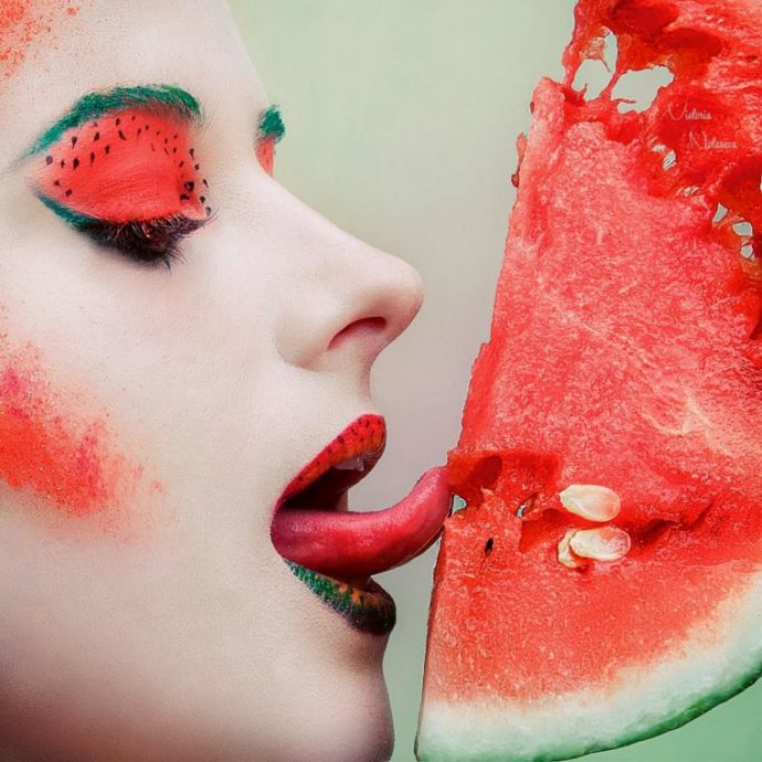 Дамы на фото сосут, лижут и кусают арбузы, сочный арбузный сок стекает между сисек до пупка и холодной струйкой по лобку вниз. Хорошая художественная эротика с женщинам, которые любят арбузы.