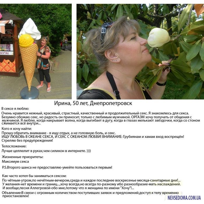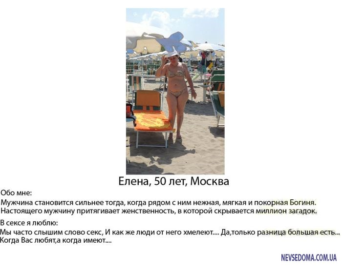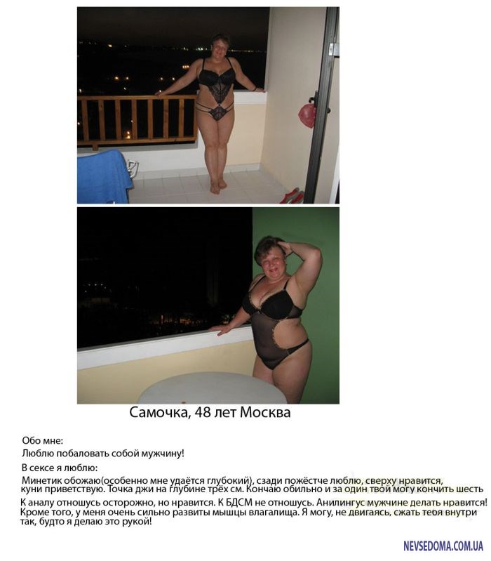 Новая порция откровений и интимных подробностей от дамочек в возрасте из социальных сетей и сайтов знакомств, которые знают, чего они хотят от жизни, от будущего партнера и от бурного секса в целом ;) Смотрим далее.
