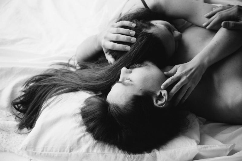 Страстные поцелуи в кровати