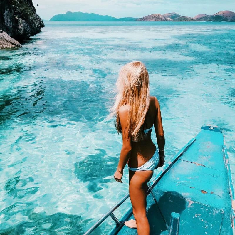 Девушка красотка у моря со спины рисунки с белыми волосами
