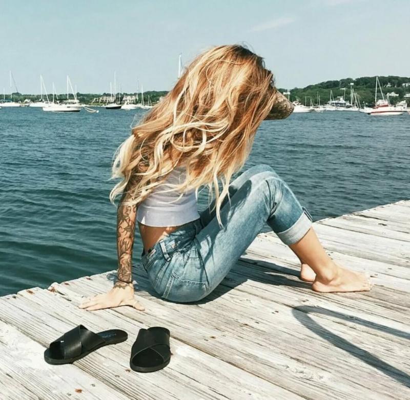Фото блондинки со спины с длинноватыми волосами в летнюю пору