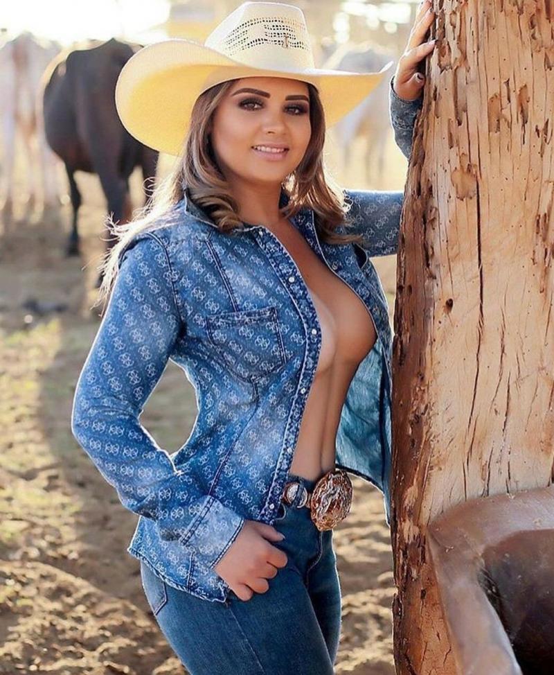 Ковбойша с огромной грудью