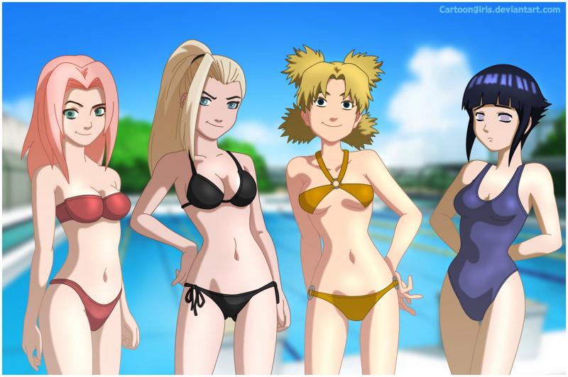 Сакура и ино и Хината в купальниках