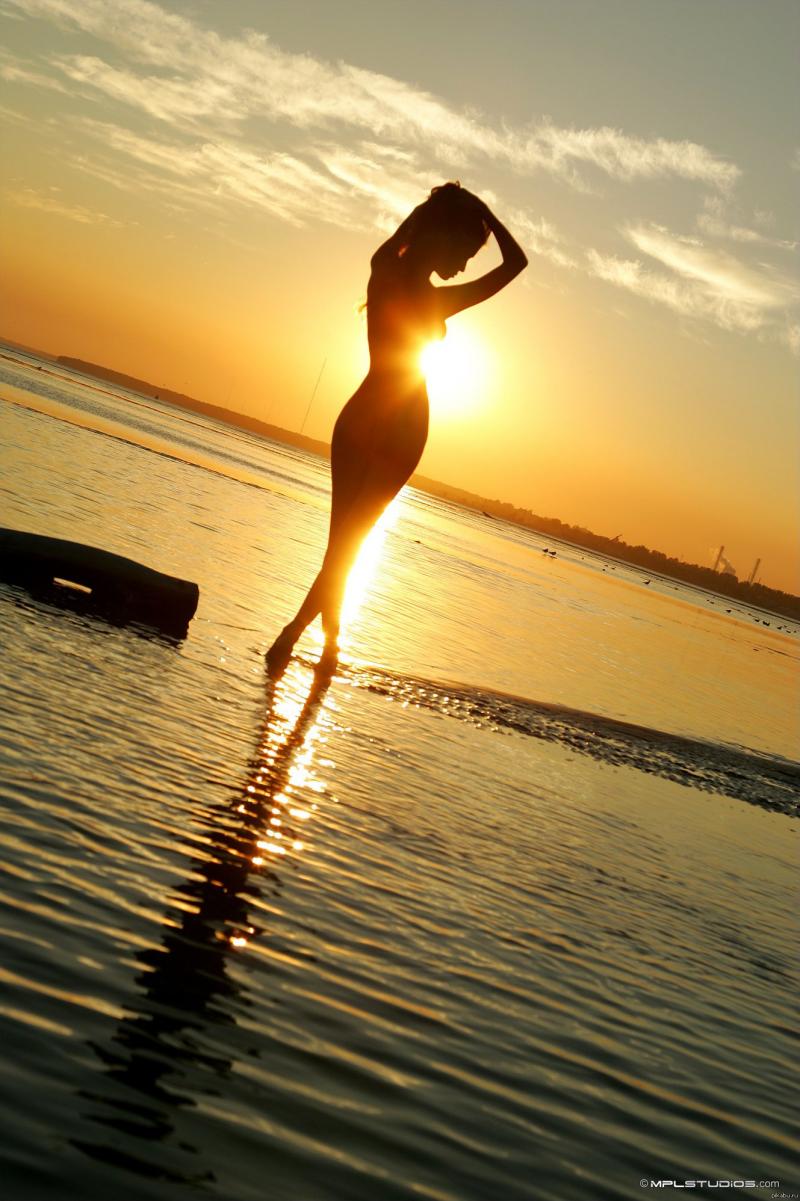 Девушка красотка на закате у моря