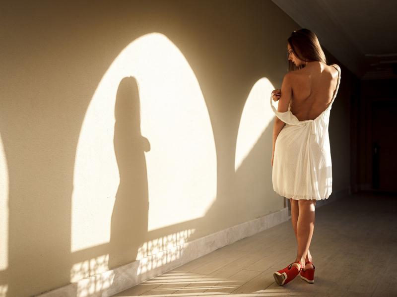 Девушка красотка и тень от окна