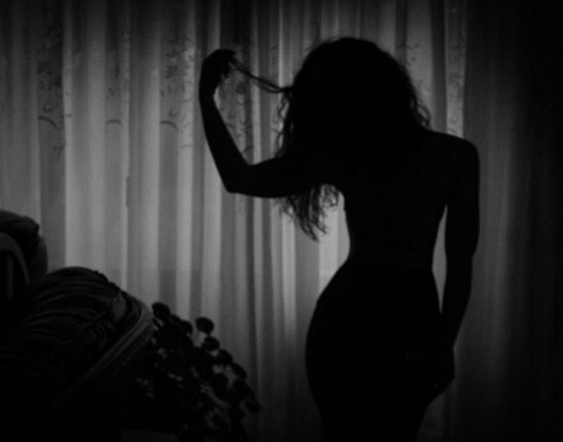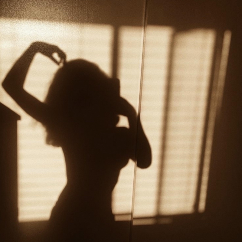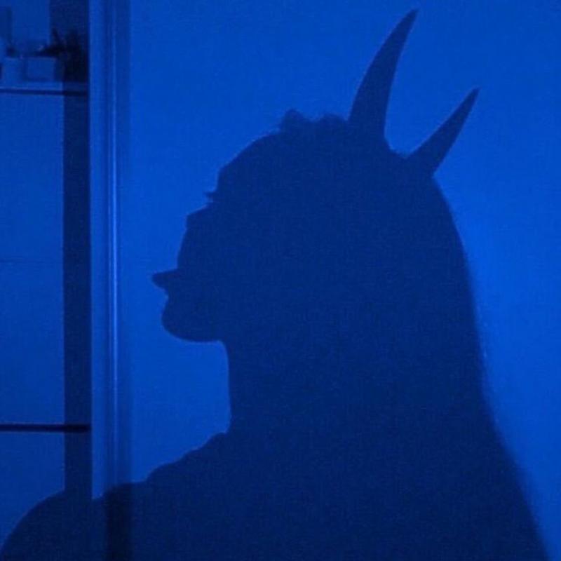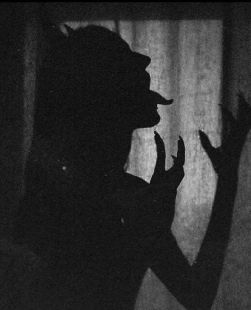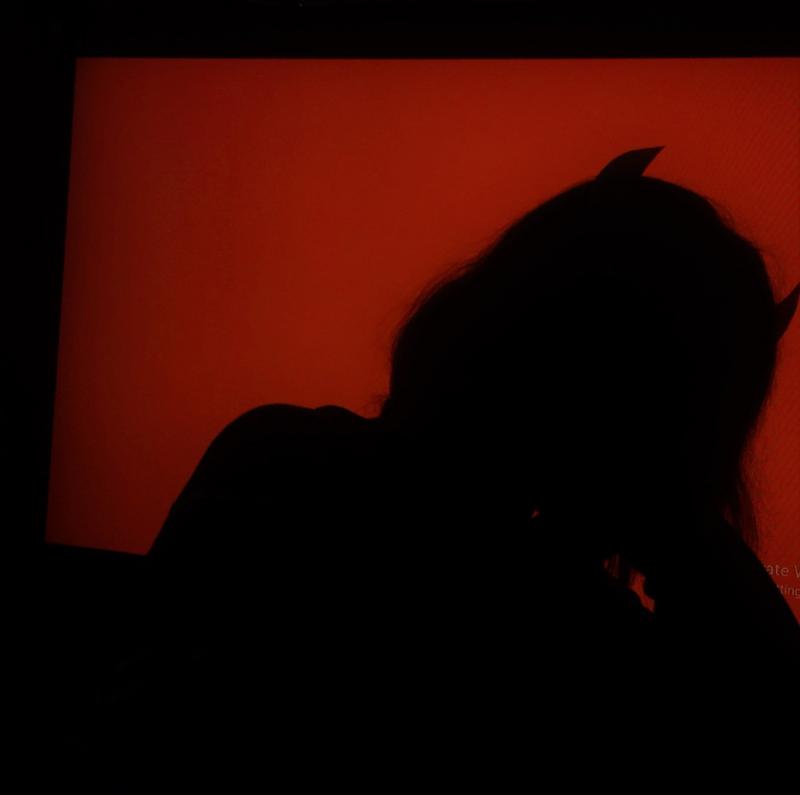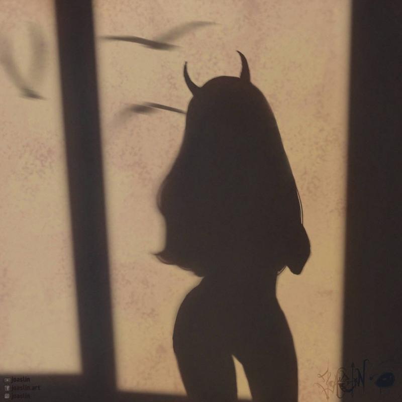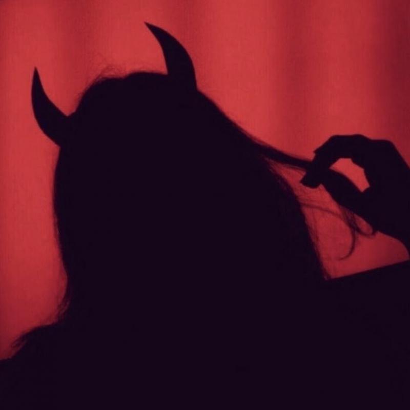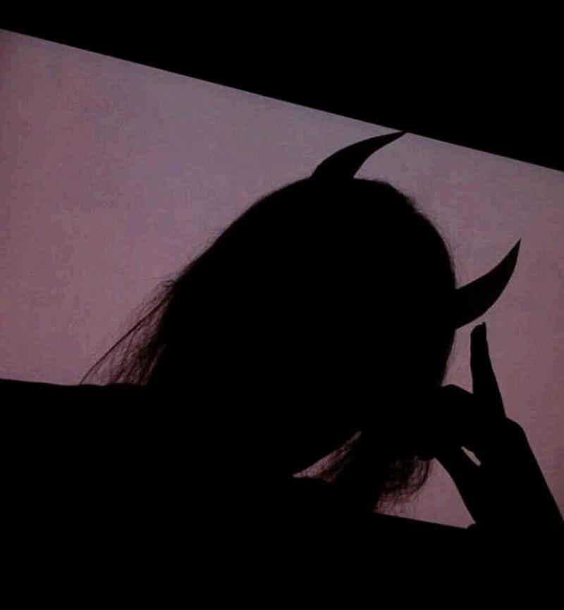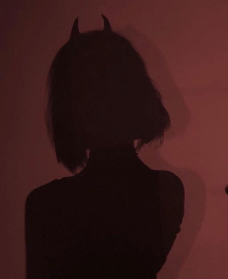 Тень девушки с рожками беса фоткающаяся в зеркале