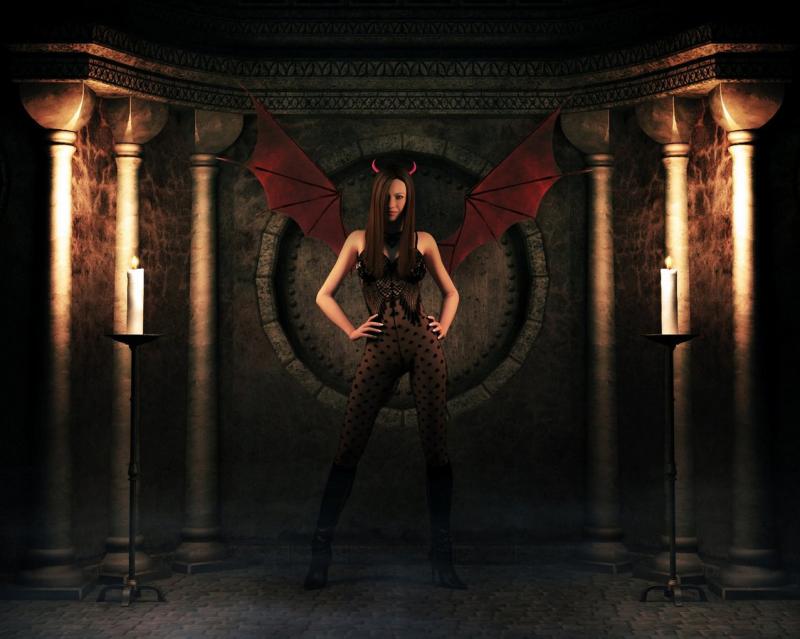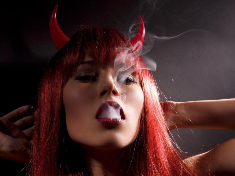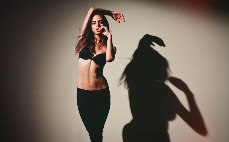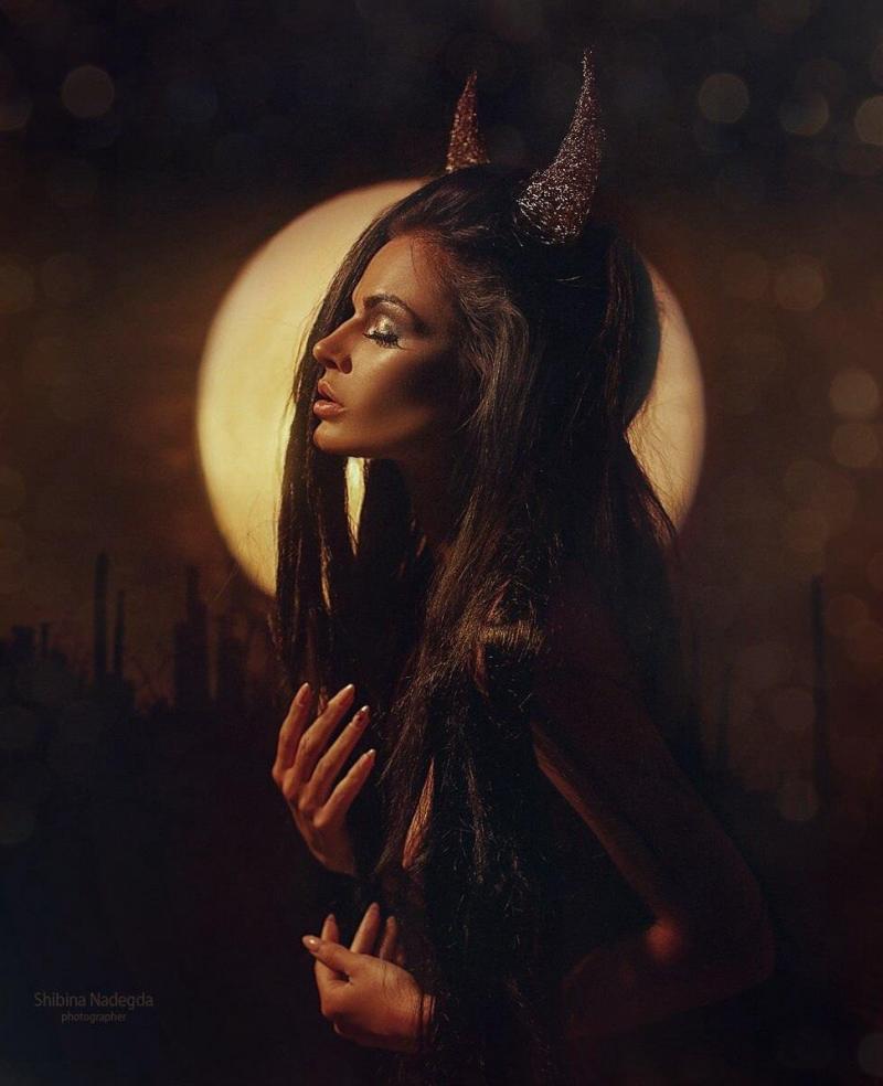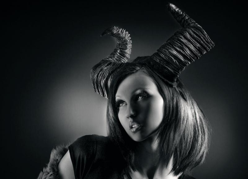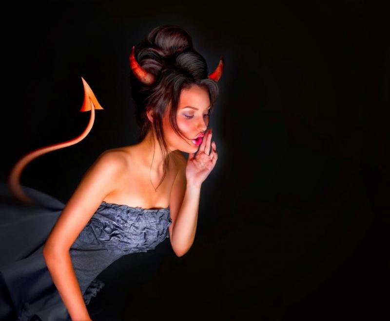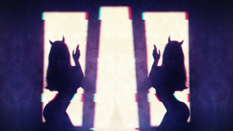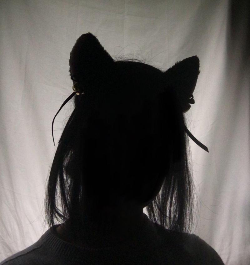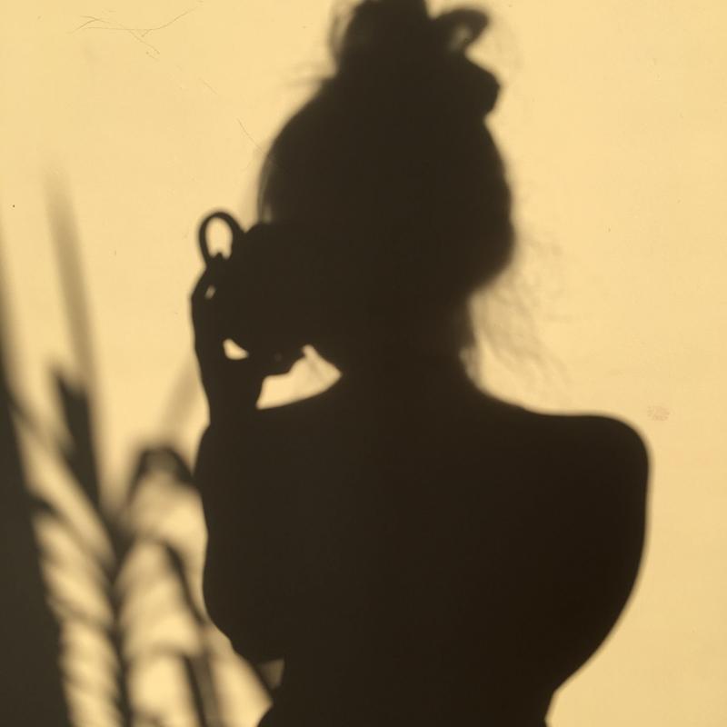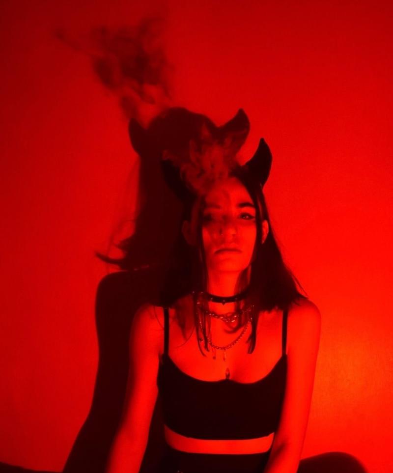 Тень девушки с рожками беса фоткающаяся в зеркале