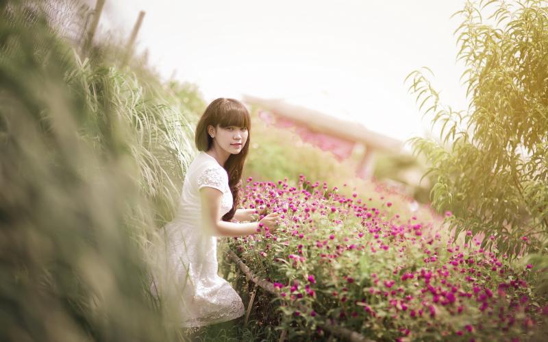 Кореянка на фоне цветов