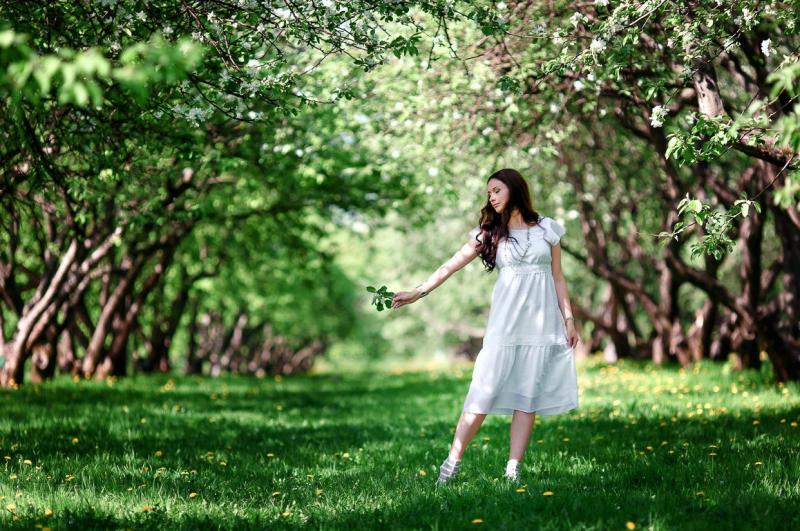 Платье для фотосессии в расцветающем саду