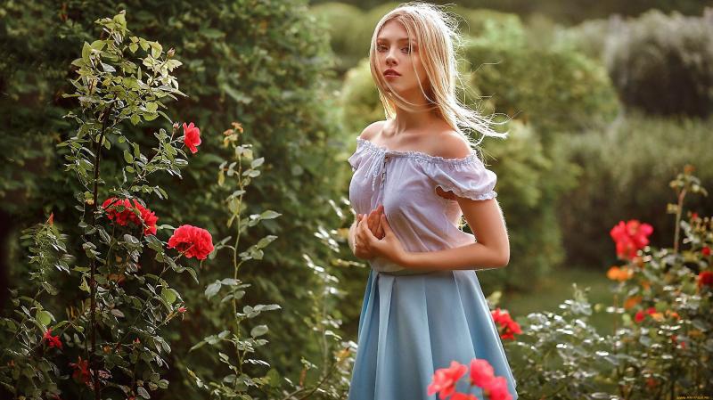 Девушка красотка блондинка в саду