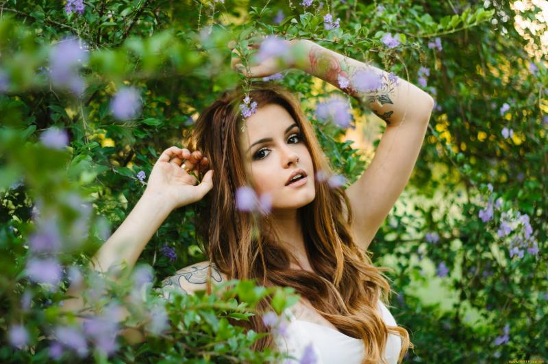 Фотосессия девушка красотка в кустах