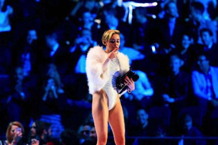 Сайрус достала «косяк» из своей сумочки и прикурила его на сцене во время получения награды за лучший клип года, которым стал ее ролик на песню «Wrecking Ball». Свои действия она прокомментировала фразой: «Награда в мою сумочку не поместится, зато я нашла там вот это». Сделав несколько затяжек, Сайрус ушла со сцены.