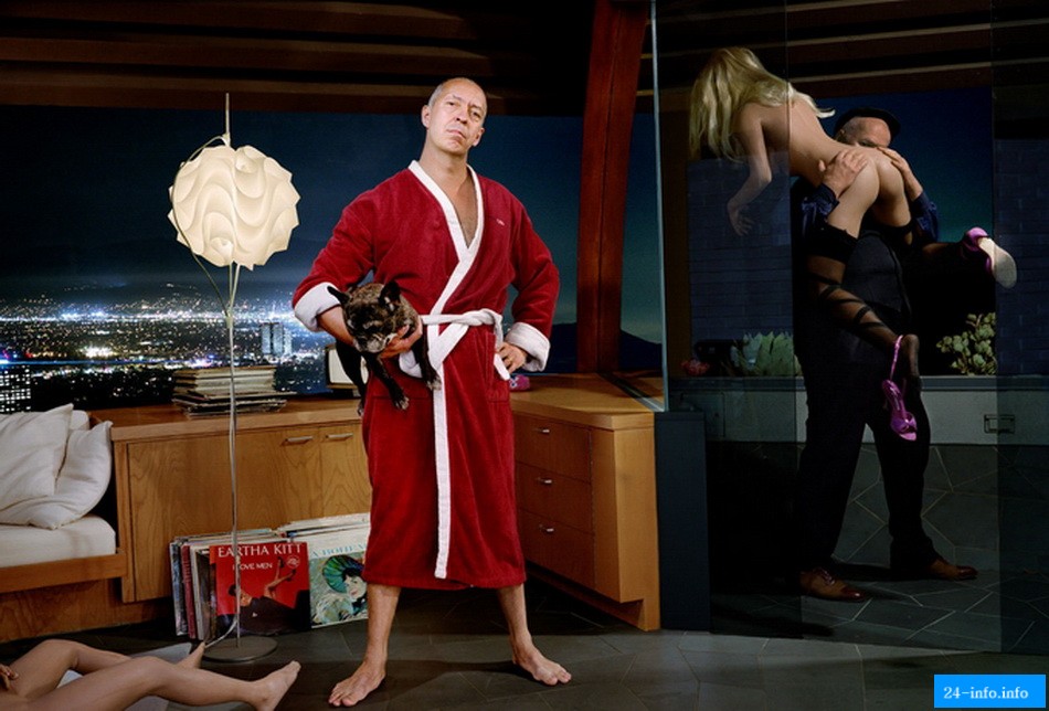 Наибольшую популярность принесли ему выполненные в оригинальной манере портреты знаменитостей, а также креативные постановочные снимки с их участием, где автор вовсю позволил разгуляться своей фантазии. Предлагаем оценить подборку работ знаменитого фотопортретиста, на которых знаменитости изображены в весьма ироничной форме.