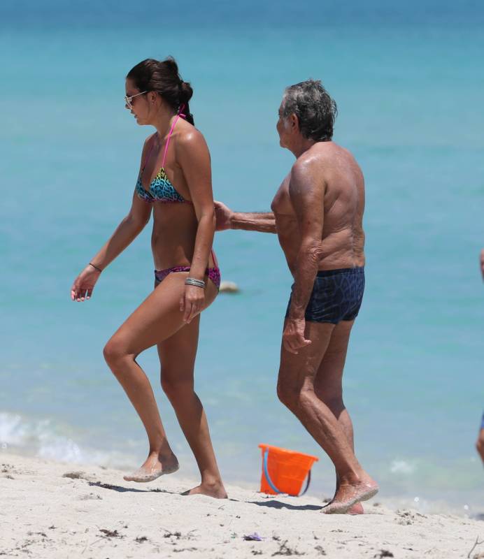Дизайнер собрал в столице Флориды практически всю свою семью — троих из 5 взрослых малышей от 2-ух браков и семерых внуков. «Майами — безупречное место для отдыха в это время года — температура +30 градусов, солнечно и небо повсевременно приятно голубого цвета. Вкус лета!» — написал маэстро Кавалли в собственном блоге. Еще наиболее приятной жизнь пожилого гения моды делает наличие рядом юный прелестной спутницы. Парочка избрала для 1-го из походов на пляж купальные наряды с плотоядным принтом, которым так славится Кавалли. На Лине было бикини Just Cavalli стоимостью 132 евро.