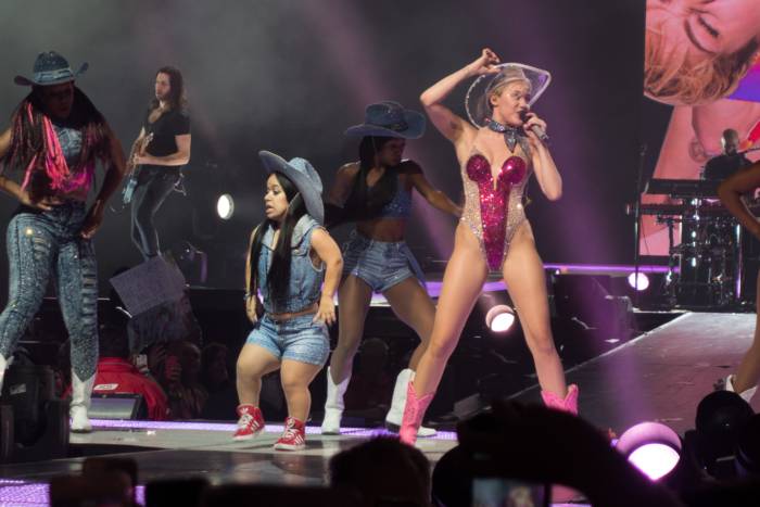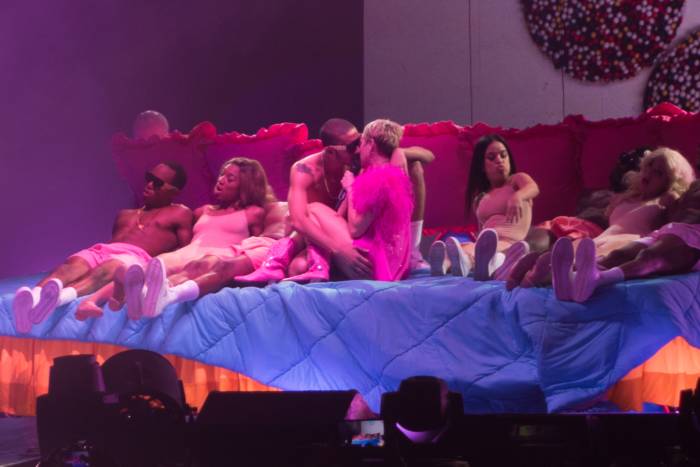 Тем временем родители, сопровождавшие своих отпрысков на концерт Майли, шокированы увиденным — экс-звезда сериала «Ханна Монтана» на сцене вела себя, как обычно, вызывающе — каталась на гигантском хот-доге, трогала себя за промежность и устроила импровизированную оргию на сценической кровати. «Мы знали, что это будет примерно так, но это было ужасно. Мы сразу же ушли, так как я не хочу, чтобы мои сыновья видели такое», — заявила разгневанная мать 12-летних близнецов. Другая посетительница представление, по ее словам, была вынуждена большую часть концерта прикрывать глаза и уши своей 8-летней племяннице: «Майли постоянно материлась, так что это было бесполезно. Мне не нужно было брать ее с собой».