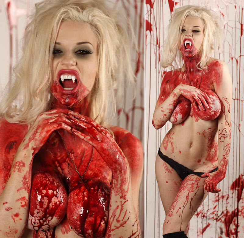 Кровавая фотосессия молодей секс-бомбы (эротика)