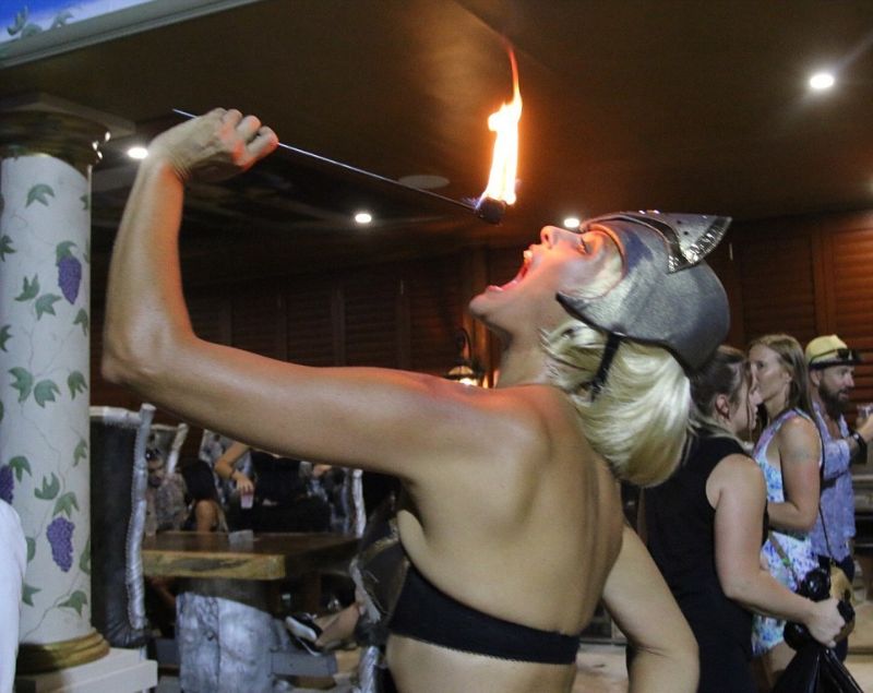 Помнится, мы уже ведали о шикарной жизни австралийского табачного магната Траверса Бейнона. Так вот, бабок у чувака не убывает, а быстрее напротив, так что живет он по-прежнему на полную катушку. Вот не так давно устроил вечеринку, которая обошлась Кэндимэну приблизительно в 380 000 баксов США. Чего на тусовке было в изобилии - так это полуголых дам различных цветов и размеров. Одни дышали огнем, остальных подвешивали связанными на крюках для утехи толпы, третьих вымачивали в бассейне и заливали вином для наиболее приятного потребления.