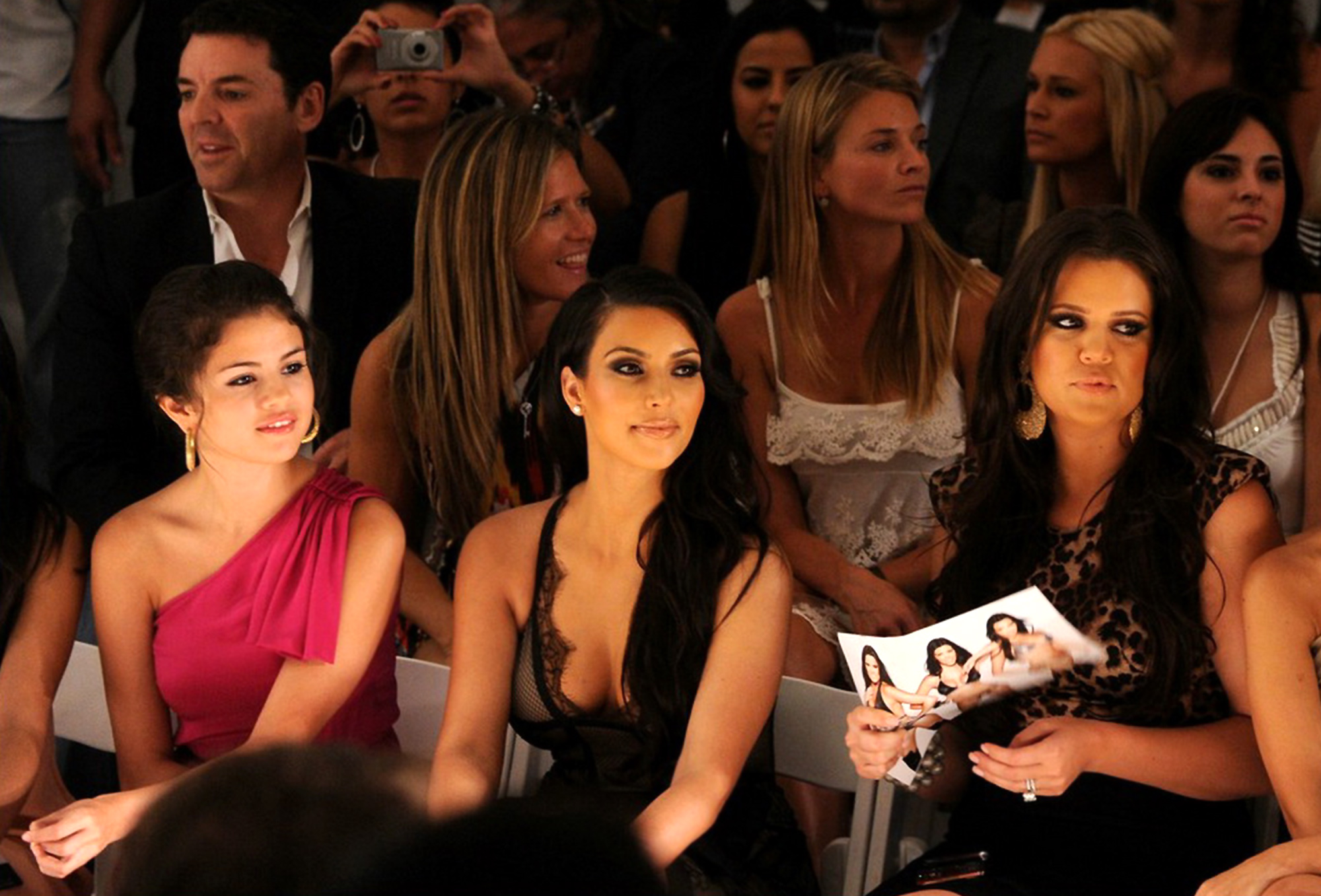 Ким на показе была в компании Селены Гомес (Selena Gomez) и своих сестер Кортни и Хлои.