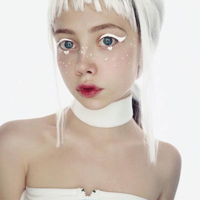 Ошеломляющая Елена Шейдлина — русская модель и живописец, живущая в Санкт-Петербурге. С помощью собственной кукольной потусторонней наружности она делает красочный мир необычной фантазии.